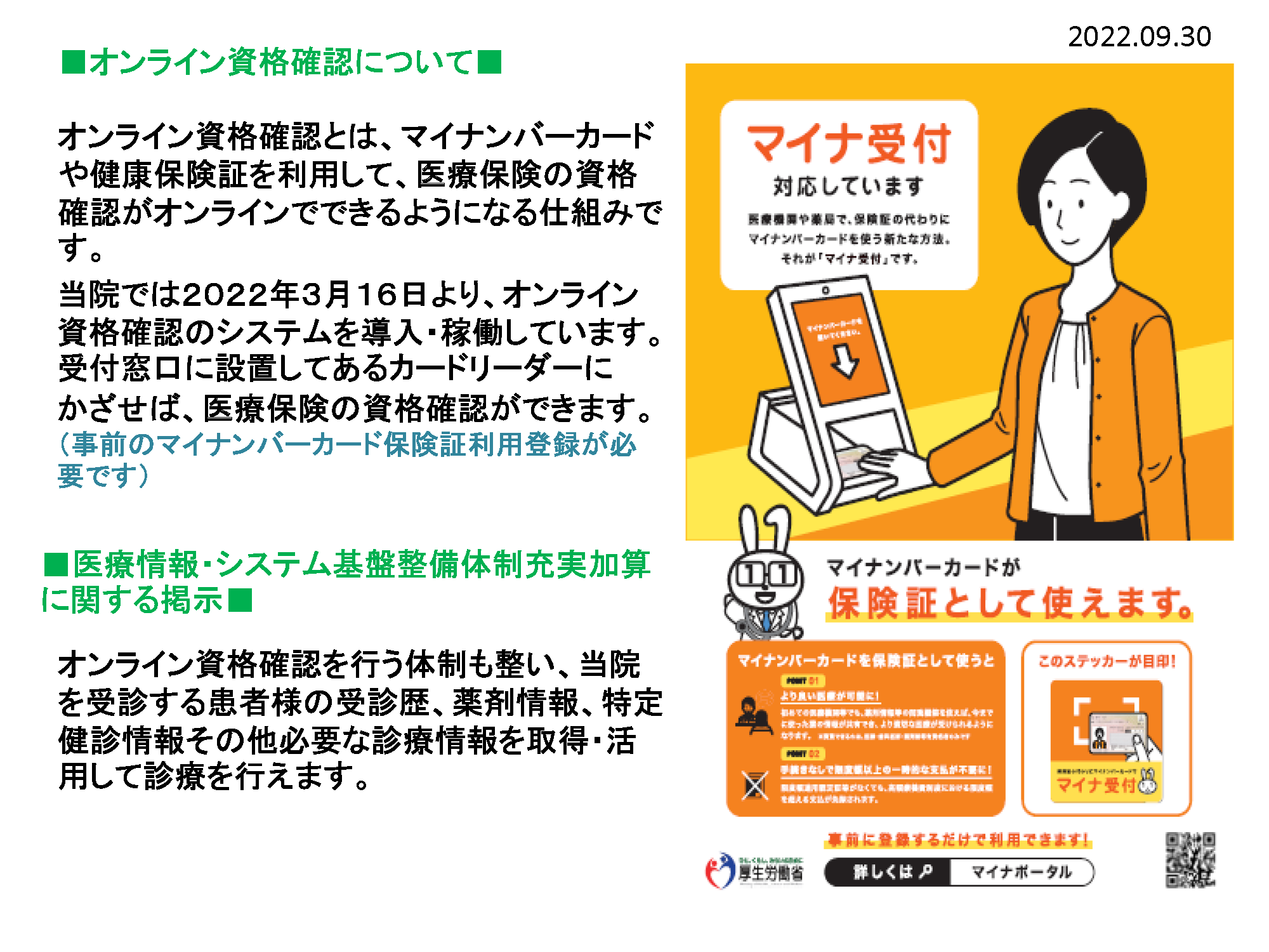 - •マイナ保険証利用の促進、医療DXを通じて質の高い医療を提供できるよう取り組んでおります。